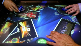 層出不窮的科技產(chǎn)品瓜分著市場和金錢,也影響著國家的支配力,技術(shù)和商業(yè)秘密的競爭勢必是激烈無情的。圖為在美國拉斯韋加斯舉辦的2009年國際消費電子展上的NBC電視臺與微軟公司共同推出的桌面屏幕。新華社記者張巖攝 |