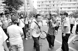 9月4日,四川省高級人民法院,“孫偉銘醉酒駕車案”受害人家屬金宇航(前中)準備進入法院。新華社記者江宏景 攝 |