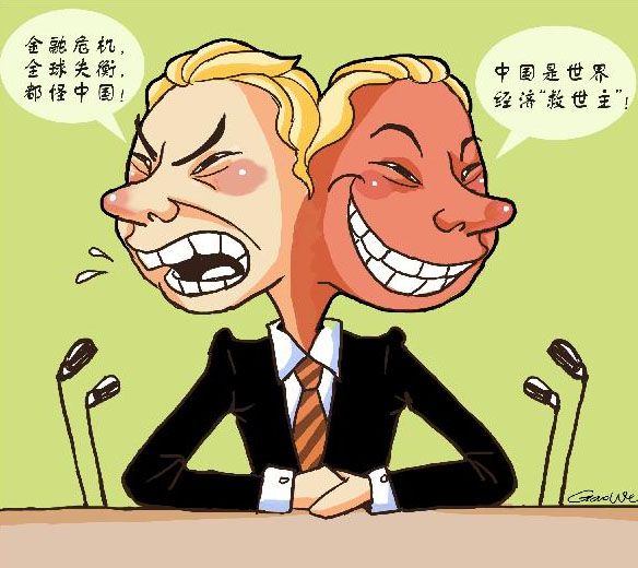 金融危機發(fā)生后,某些西方國家的政要、媒體經(jīng)常發(fā)表關(guān)于中國的言論,有“獨秀”或“救世”之說,也有“責(zé)任”之論……