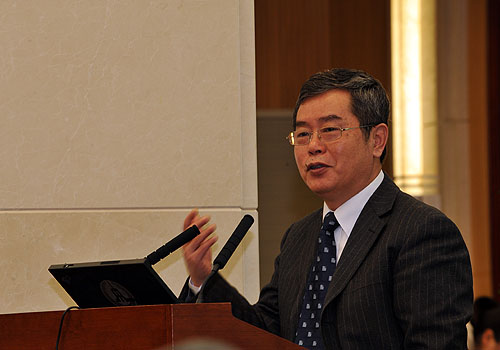 | 圖為中國(guó)社會(huì)科學(xué)院副院長(zhǎng)李揚(yáng)在1月15日舉辦的“2011中國(guó)經(jīng)濟(jì)展望高層研討會(huì)”上發(fā)言。李賀/攝 |