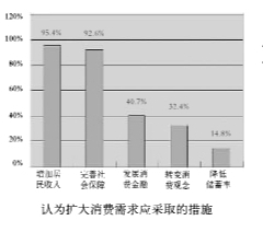 國際經(jīng)驗(yàn)證明,需求是一個國家經(jīng)濟(jì)增長的根本動力,轉(zhuǎn)變經(jīng)濟(jì)發(fā)展方式,必須有利于實(shí)現(xiàn)居民消費(fèi)率逐步提高,實(shí)現(xiàn)由外需為主向內(nèi)需為主的轉(zhuǎn)型。95.4%的領(lǐng)導(dǎo)干部指出“增加居民的勞動收入和財產(chǎn)性收入,尤其是中低階層的收入”是擴(kuò)大消費(fèi)需求的重要途徑。92.6%的領(lǐng)導(dǎo)干部選擇“完善社會保障制度,實(shí)現(xiàn)基本公共服務(wù)均等化”,說明完善公共服務(wù),解除居民的后顧之憂,能夠有力刺激居民消費(fèi)。40.7%的領(lǐng)導(dǎo)干部認(rèn)同“鼓勵金融創(chuàng)新,發(fā)展消費(fèi)金融,刺激居民消費(fèi)”,表明通過消費(fèi)信貸提升居民的消費(fèi)能力大有可為。32.4%的領(lǐng)導(dǎo)干部認(rèn)可“轉(zhuǎn)變居民傳統(tǒng)的消費(fèi)理念,鼓勵他們敢于花錢”。另有14.8%的領(lǐng)導(dǎo)干部認(rèn)為“降低儲蓄利率,降低居民的儲蓄傾向,鼓勵他們增加消費(fèi)”。