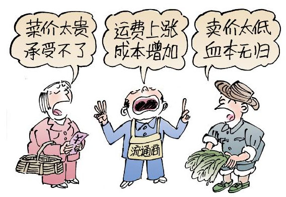 “菜賤傷農(nóng)”和“賣菜難”現(xiàn)象仍在持續(xù)。令人費解的是,市場上出現(xiàn)了菜農(nóng)市民“兩頭訴苦”、流通商“中間喊冤”的怪現(xiàn)象。 新華社發(fā)