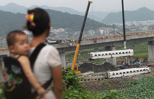 7月24日下午,溫州動(dòng)車特大事故現(xiàn)場(chǎng)。新華社發(fā)(鄭鵬