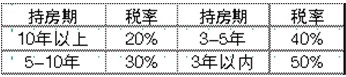 第一招:全國城市統(tǒng)一開征房產(chǎn)交易資本利得稅,取消現(xiàn)行的房產(chǎn)所得稅。現(xiàn)行的房產(chǎn)所得稅要么按買賣差價(jià)的20%征繳,要么按現(xiàn)行房價(jià)的1%征繳,這一稅種無法達(dá)到對(duì)投機(jī)性炒房的抑制作用。因此,筆者主張開征房產(chǎn)交易資本利得稅,并按“持房期”長短設(shè)置差別稅率,這樣便可極好地抑制短炒投機(jī)。資本利得稅從廣義上講屬于所得稅范疇,但稅率設(shè)置方法不同。