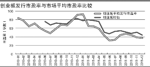 圖五:創(chuàng)業(yè)板發(fā)行市盈率與市場(chǎng)平均市盈率比較