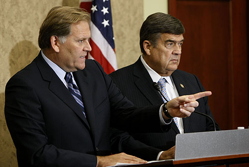 10月8日,美國會眾議院情報委員會主席邁克·羅杰斯(左)在調(diào)查報告發(fā)布會上講話。報告指出,華為公司和中興公司進(jìn)入美國市場將對美國的國家安全構(gòu)成威脅。記者
