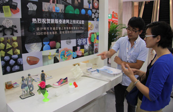 8月15日,在北京舉行的2013年中國互聯(lián)網(wǎng)大會(huì)上,上拓3D打印體驗(yàn)館的工作人員在展廳中向觀眾介紹3D打印的相關(guān)產(chǎn)品與技術(shù)。新華社發(fā)(史陽琨/攝) |