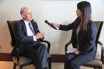 杰里米·里夫金在石家莊接受本報記者采訪。
