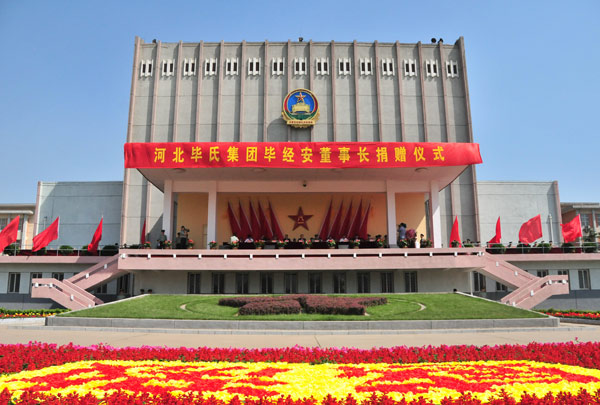 5月16日,河北畢氏集團畢經(jīng)安董事長捐贈儀式在石家莊機械化步兵學(xué)院舉行。畢經(jīng)安向?qū)W院捐贈人民幣1億元。