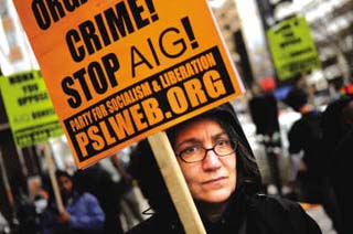 IC圖 | 當?shù)貢r間3月21日,美國康涅狄格州總檢察長布盧門撒爾表示,經(jīng)營陷入困境的美國國際集團(AIG)最近分發(fā)的獎金實際不止此前聲稱的1.65億美元,而是2.18億美元。 與此同時,美國各地民眾抗議AIG的風潮迭起。圖為洛杉磯的抗議者舉著“該死的AIG”標牌游行。AIG發(fā)放巨額獎金引發(fā)美國民眾強烈不滿。 根據(jù)最新資料,有73名美國國際集團的高級員工每人拿到的獎金超過100萬美元,其中5人的獎金更是超過400萬美元。據(jù)報道,布盧門撒爾已要求該公司就此作出解釋。 布盧門撒爾說,最新的獎金數(shù)據(jù)將使民眾對美國國際集團行為更加憤怒,因為他們認為這些員工不僅不應該得到獎金,而應該被掃地出門。 美國國際集團是美國金融危機的始作俑者之一,為避免該公司破產(chǎn)從而加劇金融危機,美國政府先后向該公司提供了1700億美元的救助資金,并控制了美國國際集團80%的股權。但該公司不久前以“履行合約”為由,宣布向員工支付了1.65億美元的高額獎金,招致美國上下的強烈批評。