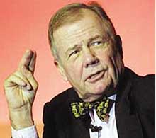 羅杰斯不遠萬里,到中國實地調(diào)查公司的經(jīng)營狀況,我們的一些投資者甚至連這家公司干什么都不知道,就敢把錢送給人家。羅杰斯來了,他讓我們得到了一個向投資大師學(xué)習(xí)的機會,沒有成熟的投資者,就沒有健康的中國股市,讓我們向羅杰斯先生學(xué)習(xí)投資。 。〒(jù)1月24日央視“經(jīng)濟半小時”) |
