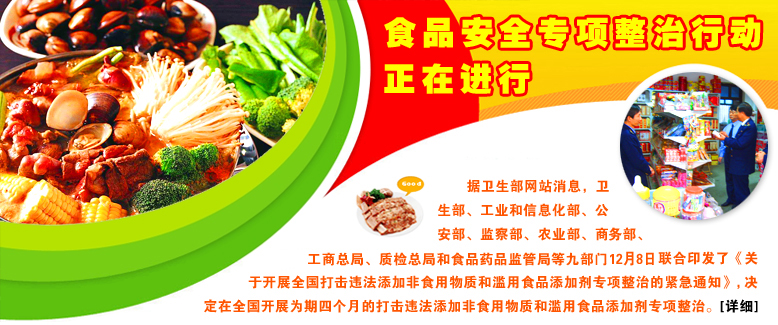| 認(rèn)真貫徹落實(shí)國務(wù)院關(guān)于系統(tǒng)而有序地解決食品安全問題、立即動(dòng)手解決濫用添加劑等緊迫問題的指示精神,全面部署在全國范圍內(nèi)立即開展打擊違法添加非食用物質(zhì)和濫用食品添加劑的專項(xiàng)整治行動(dòng)。 | |