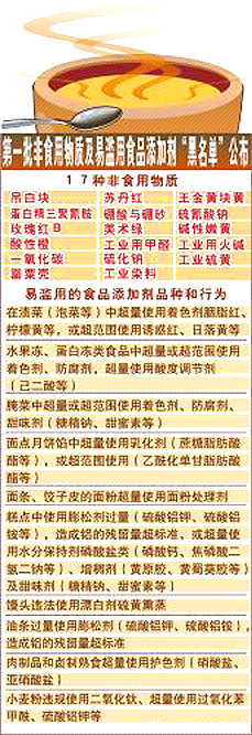 | 非食用物質(zhì)及易濫用食品添加劑"黑名單"公布 |