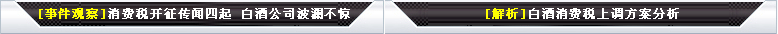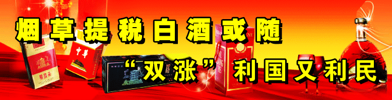 | 香煙消費稅大幅度提高后,白酒消費稅也面臨著上調(diào)。盡管白酒消費稅調(diào)整方案尚未正式發(fā)布,從各種跡象來看,“結(jié)構(gòu)性增稅計劃”已悄然從香煙和白酒開始。今年3月份,國家權(quán)威人士就放出口風,倘若出現(xiàn)財政收入不能完成計劃的情況