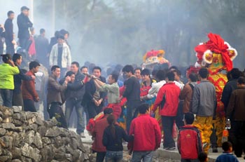 2月19日,在桂林靈川縣大圩鎮(zhèn)上橋村,從四鄰八鄉(xiāng)趕來(lái)拜年的鄉(xiāng)親們相互道賀拜年。王仲康