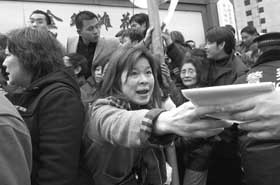2005年3月2日,位于上海外灘十六鋪的“金外灘花苑”商品房開始對(duì)外銷售,5000多名購房者蜂擁而至,搶購總共178套商品房。國新攝(資料照片) |