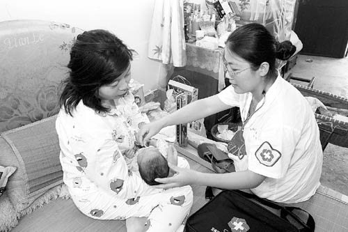 2007年9月,浙江省舟山市某社區(qū)衛(wèi)生服務(wù)中心醫(yī)生周松娜,來(lái)到民工產(chǎn)婦趙芯家中,進(jìn)行免費(fèi)測(cè)量體溫、量血壓,并傳授家庭護(hù)理新生兒的技術(shù)。胡社友