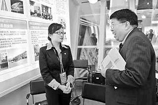 | 2008年12月25日,一位留學(xué)人員(右)在第十一屆留交會(huì)的上海展位前與工作人員交流。當(dāng)日,第十一屆中國(guó)留學(xué)人員廣州科技交流會(huì)在廣州舉行。新華社記者
