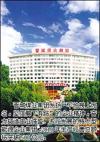 2006年,晉城煤業(yè)集團(tuán)按照“煤、氣、電、化”綜合發(fā)展,建設(shè)環(huán)保型綠色礦山的中長期發(fā)展規(guī)劃,同心同力,奮力超越,科學(xué)發(fā)展,取得了豐碩的發(fā)展成果。2006年中國企業(yè)500強(qiáng)排名,晉城煤業(yè)集團(tuán)由原來的第274位躍升至168位;2006年中國煤炭企業(yè)100強(qiáng)排名,晉城煤業(yè)集團(tuán)由第13位躍升至第7位;晉城煤業(yè)集團(tuán)煤炭產(chǎn)品“藍(lán)焰”商標(biāo)被國家工商部門認(rèn)定為中 國馳名商標(biāo),“藍(lán)焰”牌無煙煤“洗中塊”被批準(zhǔn)為“免檢產(chǎn)品”。在取得良好社會(huì)效益的同時(shí),企業(yè)經(jīng)濟(jì)規(guī)模、經(jīng)濟(jì)運(yùn)行質(zhì)量和效益持續(xù)穩(wěn)步增長。截止到2006年底,集團(tuán)公司總資產(chǎn)323.41億元,同比增長25.98%;全年實(shí)現(xiàn)生產(chǎn)經(jīng)營總額225.46億元,同比增長24.09%;全年實(shí)現(xiàn)利潤12.38億元,同比增長19.73%;全年上繳稅費(fèi)19.8億元,同比增長3.5%。