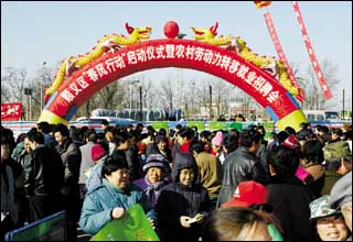堅(jiān)持項(xiàng)目建設(shè)與提供就業(yè)服務(wù)同時(shí)進(jìn)行。勞動(dòng)保障部門在獲知建設(shè)項(xiàng)目用工需求后,對(duì)該項(xiàng)目進(jìn)行“跟追式”服務(wù),千方百計(jì)為企業(yè)提供所需人員。比如,在首都機(jī)場(chǎng)擴(kuò)建工程中,他們加強(qiáng)與首都機(jī)場(chǎng)的溝通和協(xié)調(diào),利用在機(jī)場(chǎng)內(nèi)成立的“順義區(qū)勞動(dòng)(人才)服務(wù)中心”的優(yōu)勢(shì),一方面優(yōu)先安置被拆遷村勞動(dòng)力,另一方面積極推薦本區(qū)農(nóng)村勞動(dòng)力就業(yè),搶占就業(yè)崗位。