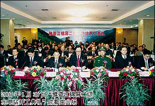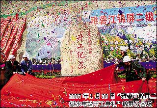 公司緊緊圍繞“雅礱江流域水能資源開發(fā)四階段戰(zhàn)略”,努力推進(jìn)和加快以錦屏水電站為主要標(biāo)志的后續(xù)項(xiàng)目建設(shè)。通過扎扎實(shí)實(shí)的工作,獲得了一個(gè)又一個(gè)豐碩成果。在前期工作快速推進(jìn)、各項(xiàng)準(zhǔn)備工作順利完成的大好形勢(shì)下,2005年9月8日國家正式核準(zhǔn)錦屏一級(jí)水電站開工建設(shè)。成為繼1991年9月雅礱江二灘水電站開工14年之后,國家核準(zhǔn)在雅礱江上開工興建的又一座巨型電站,標(biāo)志著雅礱江流域水電梯級(jí)開發(fā)全面啟動(dòng),圓了幾代水電人的夢(mèng)想。錦屏一級(jí)作為雅礱江下游的龍頭電站,其核準(zhǔn)開工進(jìn)一步帶動(dòng)了下游的錦屏二級(jí)、官地、桐子林等電站的籌建和項(xiàng)目核準(zhǔn)工作,雅礱江下游水電開發(fā)由此步入全面實(shí)施的新階段。按照四川省主要領(lǐng)導(dǎo)和公司董事會(huì)的指示,公司2005年10月成立了兩河口水電站建設(shè)管理籌備機(jī)構(gòu),并啟動(dòng)對(duì)外交通等工程的建設(shè)工作。兩河口水電站作為雅礱江中游具有多年調(diào)節(jié)功能的龍頭電站,其前期工作的有序開展,有力地帶動(dòng)了雅礱江中游牙根、卡拉、楊房溝等電站的前期工作,使雅礱江中游和下游水電項(xiàng)目“壓茬”開發(fā)的態(tài)勢(shì)初步形成。2006年12月4日,錦屏一級(jí)水電站比預(yù)計(jì)時(shí)間提前兩年成功實(shí)現(xiàn)大江截流;與此同時(shí),錦屏二級(jí)水電站又獲得國家核準(zhǔn),2007年1月30日舉行了隆重的開工典禮,雅礱江開發(fā)又開始書寫新的華章。這一系列水電開發(fā)的“大動(dòng)作”均成為水電界近年來的重大事件,無不有力地展示出雅礱江流域水電開發(fā)的宏大氣勢(shì),表明了二灘公司領(lǐng)導(dǎo)班子和全體員工加速開發(fā)雅礱江的堅(jiān)定決心和信心。