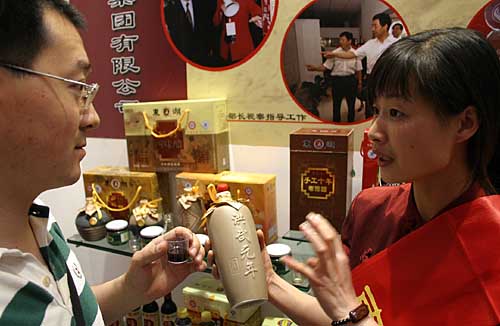 6月6日,由山西省政府信用山西建設(shè)領(lǐng)導(dǎo)組舉辦的“首屆山西品牌節(jié)”在中國(guó)煤炭博物館亮相。在展示廳一服務(wù)員向顧客介紹山西千年老陳醋品牌。