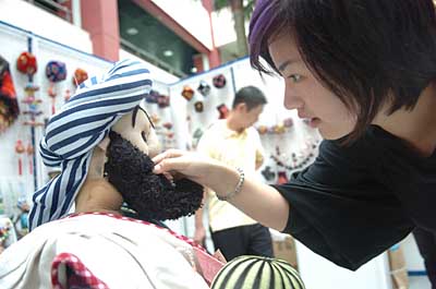 9月19日,展洽活動現(xiàn)場新疆婦女手工制作的特色布娃娃吸引了參觀者的眼球。當(dāng)日,全國婦女“市場帶千村”項(xiàng)目推進(jìn)暨手工制品展洽活動在浙江省義烏市小商品市場舉行,來自全國31個省、市、自治區(qū)的婦女代表前來展示和推介自己的手工制品。