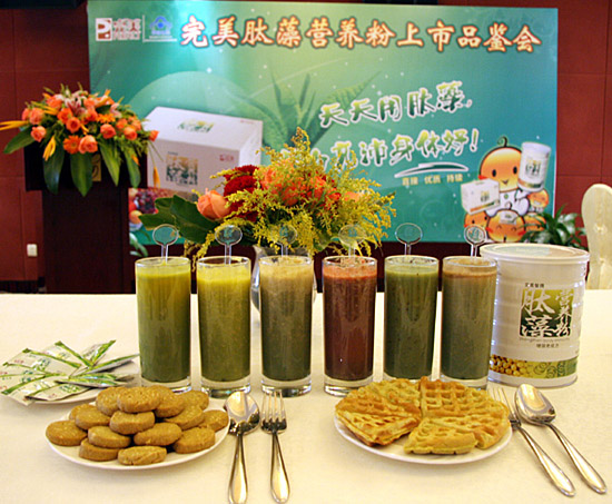 在隨后的上市品鑒會上,廚藝師傅現(xiàn)場烘制、調(diào)配了以肽藻營養(yǎng)粉為主要原料的餅干及飲料。于顯文高級經(jīng)理在品鑒會上介紹說:肽藻營養(yǎng)粉作為一款新型高科技含量的保健食品,是始終依循完美公司的“清調(diào)補”理念來研發(fā)、組方的。肽藻營養(yǎng)粉精選來自植物(大豆肽、南瓜粉、薏苡仁粉等)、藻類(螺旋藻)、動物(乳清蛋白)中的天然營養(yǎng)物質(zhì)為主要原料,富含維持人體正常生理功能所必需的蛋白質(zhì)、低聚肽、多糖、維生素、礦物質(zhì)等營養(yǎng)成分和生理活性成分,而五谷雜糧的配入,使配方更加科學(xué)合理、全面、均衡,更好地增強(qiáng)人體免疫能力,擺脫亞健康。肽藻營養(yǎng)粉同時也是一款生活化、個性化的食品,在生活中,消費者可以根據(jù)個人的喜好和需要,個性化地食用。