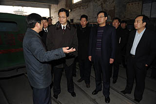 | 登封市人民政府市長鄭福林(左二)在了解企業(yè)發(fā)展情況。 |