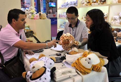 在105屆廣交會上,中國玩具出口企業(yè)在努力維持老客戶的同時,開始尋找新興市場,甚至開始尋找內銷市場。不少企業(yè)今年開始開發(fā)適合國內市場的產品,尋找新的業(yè)績增長點。4月26日,一位來自墨西哥的客商在廣交會的展館中洽談。