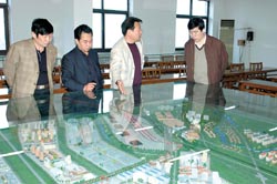 靜?h委書記孫文魁(右一)及副縣長陳顏忠(左一)和唐官屯鎮(zhèn)黨委書記趙強(qiáng)(右二)、鎮(zhèn)長趙洪軍(右三)共同研究唐官屯物流園規(guī)劃。 |