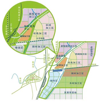 依托縣域鋼鐵產(chǎn)業(yè)基礎(chǔ),重點(diǎn)發(fā)展以下三種精深加工:一是扁平材深加工;二是以板帶材為原料的焊管深加工以及焊管產(chǎn)品的加工;三是長材的深加工,以加工為龍頭、物流為配套,形成“鋼材物流-鋼材深加工-成品物流-客戶”的產(chǎn)業(yè)鏈系。 充分利用鐵路運(yùn)輸資源,實(shí)現(xiàn)與周邊木業(yè)生產(chǎn)集散地的有效對接,引進(jìn)專業(yè)廠家和成套設(shè)備,對木材進(jìn)行專業(yè)化、系列化生產(chǎn)與加工,擴(kuò)大市場覆蓋面,全面提升木材加工的附加值。重點(diǎn)生產(chǎn)木線、復(fù)合板、膠合板、中密度板、細(xì)木工板等產(chǎn)品,發(fā)展門業(yè)、櫥柜、家具等木材深加工企業(yè)。以加工為龍頭、物流為配套,形成“木材物流-木材深加工-成品物流-客戶”的產(chǎn)業(yè)鏈系。 充分利用鐵路、公路運(yùn)輸資源,以節(jié)能環(huán)保建材為發(fā)展方向,突出低成本、高附加值產(chǎn)品的生產(chǎn),適應(yīng)市場需求,擴(kuò)大生產(chǎn)規(guī)模,加大產(chǎn)品開發(fā)深度,提高經(jīng)濟(jì)效益。重點(diǎn)發(fā)展玻璃制品、鋁合金型材、保溫節(jié)能材料、玻璃鋼制品、新型墻體材料等產(chǎn)品。以加工為龍頭、物流為配套,形成“建材物流-建材加工-成品物流-客戶”的產(chǎn)業(yè)鏈系。 大力發(fā)展上下游產(chǎn)業(yè)鏈經(jīng)濟(jì),企業(yè)之間相互合作,互為支撐,鼓勵(lì)建設(shè)集約、經(jīng)濟(jì)、高效的工業(yè)產(chǎn)業(yè)體系。由物流企業(yè)經(jīng)鐵路、公路向區(qū)內(nèi)加工企業(yè)提供鋼材、木材等材料,由區(qū)內(nèi)加工企業(yè)制造相關(guān)產(chǎn)品,再由物流企業(yè)向本地區(qū)及周邊地區(qū)的客戶提供物流配送服務(wù)。客戶需求信息→信息網(wǎng)絡(luò)平臺→物流(公路、鐵路戰(zhàn)略卸點(diǎn))→鋼材材料(木材材料)→工業(yè)深加工→上下游企業(yè)→工業(yè)產(chǎn)品→終端消費(fèi)客戶。 充足的倉儲用地,現(xiàn)代化的基礎(chǔ)設(shè)施建設(shè),將會(huì)在唐官屯加工物流區(qū)形成現(xiàn)代化的倉儲區(qū),為區(qū)內(nèi)的企業(yè)及周邊地區(qū)的廣大客戶提供物資倉儲服務(wù)。 以客戶需求為導(dǎo)向,強(qiáng)調(diào)公共型配送、共同型配送和專業(yè)化配送的有機(jī)結(jié)合與協(xié)調(diào)發(fā)展。整合物流配送資源,降低營運(yùn)成本,提高獲利能力。通過物流信息平臺的建立,擴(kuò)大配送服務(wù)半徑和貨物集散空間。