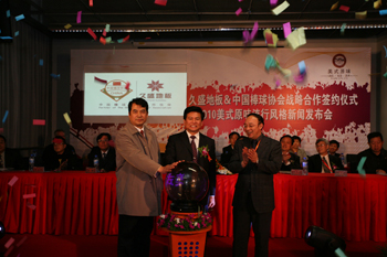 發(fā)布會期間,久盛地板與中國棒球協(xié)會之間的戰(zhàn)略合作項目順利完成簽約。與此同時,久盛地板2010美式原味流行風(fēng)格也隨之發(fā)布,以及與中國棒球協(xié)會合力舉辦的“中國棒球?qū)氊悺焙_x活動也正式宣告啟動。