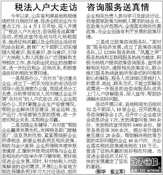 稅法大戶(hù)大走訪 咨詢(xún)服務(wù)送真情