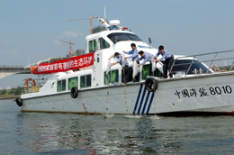 10月25日,福建漁業(yè)執(zhí)法人員在向閩江內(nèi)投放魚(yú)苗。 當(dāng)天,福建省海洋與漁業(yè)局和福州市人民政府聯(lián)合舉辦“手牽手參與增殖放流,心連心創(chuàng)建和諧福州”的閩江流域增殖放流活動(dòng),共投放日本鰻鱺、草魚(yú)、鰱魚(yú)、鯉魚(yú)等魚(yú)苗以及中華絨毛蟹苗共40多萬(wàn)尾(只)。