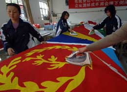 10月29日,北京市京工紅旗廠的職工在熨燙參會(huì)非洲國家的國旗。為迎接即將在北京召開的“中非合作論壇北京峰會(huì)”,北京市京工紅旗廠的職工夜以繼日努力工作。