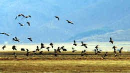 三江并流世界自然遺產(chǎn)地,位于云南省西北部橫斷山脈的金沙江、瀾滄江和怒江流域的特定自然地理區(qū)域,是世界上罕見的集地質(zhì)地貌多樣性、動植物多樣性、景觀多樣性及民族文化多樣性于一體的高山峽谷自然區(qū)域。為保護當?shù)厣鷳B(tài)環(huán)境,云南省先后劃定了白馬雪山、玉龍雪山等10余個國家和省級自然保護區(qū),并投入巨資實施天然林保護工程和水土保持工程。目前,這一區(qū)域林草豐茂,美景如畫。圖為鳥類在云南省迪慶藏族自治州香格里拉縣境內(nèi)的納帕海自然保護區(qū)內(nèi)飛翔。 |