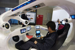 與一般的消費電子展不同,在現(xiàn)場,記者沒有看到參展商以嘈雜的歌舞表演吸引眼球,取而代之的是一個個場景式的展位安靜地等待參觀者體驗。整個展會分為“我的數(shù)字車生活”、“我的音樂動起來”、“SOHO辦公無線精彩”、“GAMING CENTER我的世界我最拽”等主題展,參觀者可以自由參與商家舉辦的各種活動,如eBay的數(shù)字產(chǎn)品圣誕拍賣,中視網(wǎng)元組織的極品飛車、瘋狂足球等最新的電腦游戲。