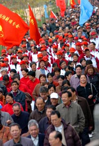 1月5日,上萬名中老年人健步在福州市閩江畔。 當(dāng)日,以“全民健身與奧運同行”為主題的2007年福州市“迎奧運”中老年人萬人健步行活動在美麗的閩江畔舉行,福州市各縣區(qū)的5萬多名老人同時參加了健步行活動。