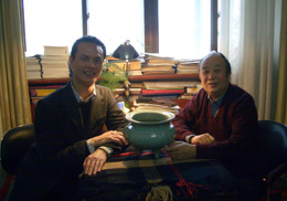 趙青云(右)為歐洲古董經(jīng)紀(jì)(左)鑒定宋瓷。 |