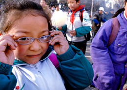 近日,針對(duì)青少年高發(fā)性近視所呈現(xiàn)的上升趨勢(shì),銀川市醫(yī)療衛(wèi)生機(jī)構(gòu)在部分中小學(xué)中啟動(dòng)了青少年視力保健干預(yù)機(jī)制,通過(guò)視力健康早期行為和環(huán)境因素的干預(yù)指導(dǎo)工作,如眼保健操的規(guī)范、錯(cuò)誤用眼習(xí)慣的矯正、燈光和課桌椅的調(diào)整等,讓中小學(xué)生視力逐漸得到恢復(fù)和保持。銀川市第二回民小學(xué)門口,一名小女孩告訴記者她的眼鏡已經(jīng)有500度。 |
