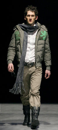 記者發(fā)現(xiàn),本季男裝在領部別具特色,高領針織衫、條格圍巾、各色領帶,可謂花樣百出。這同時也盡顯了設計師的特殊用意,讓男人們既可以表達品位又充分抵御了寒冷。 本季秋冬男裝不僅沿用了純色和條格的常備圍巾單品,而且在領帶上大做文章,基本都以寬大領帶配窄領西服示人。另外,個別的衣領款式也做得非常獨特,像有款西裝的領子就做成了帽子,這種大膽獨特的設計也為那些尋求個性化的男士們提供了多元的選擇。杉杉·SPORT的男士休閑服則在衣領部位大膽運用撞色,以純色摩托外套搭配胸領處微露的亮色針織衫的形式,來呈現(xiàn)領飾的別致。 |
