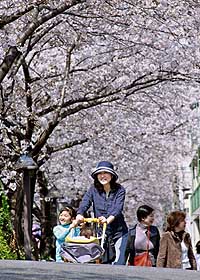 春雨洗凈鉛華,又逢賞櫻時(shí)節(jié)。在東京著名的賞櫻勝地新宿御苑,櫻樹繁花似錦,樹下游人如織。春風(fēng)伴著花香,吹進(jìn)賞花人的心里。 在御苑一株櫻樹下,平澤和幾名好友席地而坐,面前擺放著意大利通心粉、飯團(tuán)和面包等食品。她們盡情聊天,享受著午后悠閑的時(shí)光。微風(fēng)吹過,花瓣飄落,草坪籠上一層粉紅的氤氳。 在日本,4月1日是新年度的開始,也是新生入學(xué)和公司新員工正式上班的日子。在這一天外出賞櫻,自然也成為同學(xué)或同事聯(lián)誼的良機(jī)。 御苑問訊處的工作人員本莊說:“平時(shí),這里游客每天最多也就兩三萬人,而在賞櫻時(shí)節(jié),特別是天氣晴朗的周末,每天游客可達(dá)10萬人左右!痹诮衲甑馁p櫻季節(jié),新宿御苑在原來三個(gè)售票點(diǎn)的基礎(chǔ)上又增設(shè)了兩個(gè)臨時(shí)售票點(diǎn),但每個(gè)售票點(diǎn)窗口前還是排起了上百米的“長龍”。 不光是御苑,日本幾乎每個(gè)稍有名氣的賞櫻場所,每年3月到4月的賞櫻時(shí)節(jié)都門庭若市。人們或呼朋喚友或全家出動(dòng),在櫻樹下鋪上塑料布,聊天、唱歌、玩游戲,或者什么都不做,只是靜靜地躺著,閑看淡粉色的櫻花映襯在碧空下。 這時(shí)節(jié),種有櫻樹的人家一般都會(huì)邀請(qǐng)親朋好友到家里賞花,種有櫻樹的學(xué)校和企業(yè)也會(huì)向公眾開放。年輕學(xué)生和上班族一般會(huì)在忙完功課或工作后,相聚在一起觀賞夜櫻。東京上野公園、愛宕神社和京都円山公園等夜晚都會(huì)點(diǎn)燈。與白天相比,朦朧燈光下的夜櫻別有一番風(fēng)情。 這時(shí)節(jié),連整個(gè)日本社會(huì)仿佛都在圍繞著賞櫻運(yùn)轉(zhuǎn):氣象廳每隔幾天就要發(fā)布一次各地的花期預(yù)報(bào);一些網(wǎng)站每天更新各地賞櫻場所的開花情況;不少商店在醒目位置擺放“賞櫻便當(dāng)”、“賞櫻團(tuán)子”、清酒和水壺等賞花用的食品和器具;警方則加派人手疏導(dǎo)賞櫻場所的交通。 賞櫻已成為日本的春季盛事。在日語中,“賞花”一詞如果沒有添加限定詞,指的就是觀賞櫻花。由于各地櫻花開放的日期不同,不少日本人甚至從南往北隨著花期的推移趕到各地賞櫻。 |