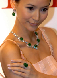 4月30日,模特在展示一套估價680萬到980萬港幣的翡翠蛋面鉆石首飾。當日,香港佳士得拍賣行在香港舉行春季瑰麗珠寶及翡翠首飾拍賣品傳媒預展,拍賣會將于5月30日在香港會議展覽中心舉行。