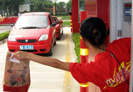 當(dāng)天,四川首家汽車快餐店亮相成都,車主無需停車即可購買到快餐食品,極大地方便了開車的顧客。成都是我國私家車第三家,汽車保有量60余萬輛,其中私家車50余萬輛。