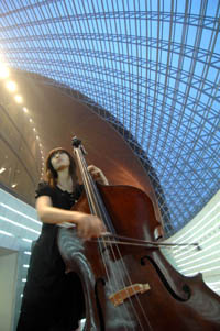 舉世矚目的國家大劇院已基本落成,并將在9月25日迎來試演出。圖為一名小提琴手在國家大劇院內(nèi)演奏。