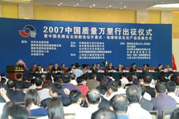 由國家質(zhì)檢總局和中國質(zhì)量萬里行促進(jìn)會共同舉辦的2007中國質(zhì)量萬里行出征儀式日前在北京舉行。此次萬里行七個團(tuán)隊同時踏上征途,將分別以城市服務(wù)質(zhì)量、農(nóng)村質(zhì)量、標(biāo)準(zhǔn)、精品“三下鄉(xiāng)”、保護(hù)地理標(biāo)志產(chǎn)品、食品質(zhì)量安全、打擊假冒保護(hù)名優(yōu)、質(zhì)量興市、大學(xué)生見證質(zhì)量為主題開展活動。 |