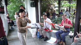 為貫徹“民生第一”原則,從2006年,常州市開始將紅梅公園、椿桂園、薔薇園生態(tài)濕地公園、東方綠地公園免費(fèi)開放。2007年,又把新建的荊川公園、青楓公園二期、荷園、武進(jìn)新天地公園、淹城森林公園二期、開花溪公園也全部免費(fèi)開放。至此,常州市的所有公園全部免費(fèi)開放。圖為常州紅梅公園內(nèi)的市民在唱昆曲。