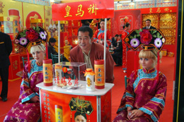 10月9日,觀眾在全國糖酒商品交易會預(yù)展現(xiàn)場拍照留念。當(dāng)日,由中國糖業(yè)酒類集團(tuán)公司主辦,哈爾濱市人民政府承辦的“2007年秋季全國糖酒商品交易會”在哈爾濱市國際會展體育中心開始預(yù)展。 交易會10月12日至10月14日舉行。本屆展會參展參會企業(yè)近6000家,其中包括茅臺、五糧液、劍南春等國內(nèi)知名品牌以及黑龍江省內(nèi)的玉泉、北大荒、龍江龍、富裕老窖、秋林食品等名優(yōu)產(chǎn)品。展會規(guī)劃總面積132766平方米,有展位4691個。展品主要包括白酒、啤酒、果酒、飲料、礦泉水、乳制品、糖類、副食品、小食品、保健品、罐頭食品等十多個類別近萬個品種。 據(jù)介紹,全國糖酒交易會是由中國糖業(yè)酒類集團(tuán)公司主辦、地方政府承辦的全國糖酒、飲料、食品及相關(guān)產(chǎn)業(yè)的重大經(jīng)貿(mào)盛會。始于1955年,每年召開春秋兩屆。改革開放以來,糖酒會有了突飛猛進(jìn)的發(fā)展,每屆的成交額都在百億以上,被業(yè)界譽(yù)為“全國第一展會”。
