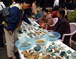 瑞麗毗鄰緬甸,是緬甸出口翡翠的最大陸路通道,我國最重要的珠寶交易集散地之一。瑞麗寶玉石行業(yè)的固定資產約為五億元,形成了原料—加工—批發(fā)—零售一條龍的產業(yè)鏈,2006年被評為“中國珠寶玉石首飾特色產業(yè)基地”。